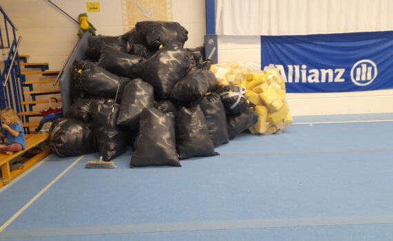 Nach 3 Jahren war es wieder so weit: Die Schnitzelgrube in der Allianzhalle musste gereinigt und mit neuem Material aufgefüllt werden. In einer dreistündigen Aktion wurde die Grube komplett ausgeräumt und von Schaumstoffabfällen gereinigt. Unzählige zerfledderte Schnitzel wurden aussortiert, in Säcke gestopft und zur Entsorgung bereit gestellt. Nach dem Einfüllen der noch brauchbaren Schnitzel wurde die Grube mit dem neu angelieferten Material aufgefüllt. Herzlichen Dank an alle Helferinnen und Helfer für ihren Einsatz!