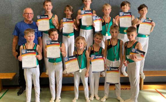 Beim Landesfinale der Badischen Turnerjugend am 10.05.2025 in Bühl waren die Turner des SV Istein mit 2 Mannschaften vertreten. Dabei erturnten sich die Jungs der Altersklasse M10/11 unter 8 Mannschaften aus ganz Baden einen hervorragenden 2. Platz. In der Mannschaft turnten Konstantin Domschke, Daniil Haponov, Michail Leis, Vladimir Tretiak. Die jüngeren Turner des SV Istein belegten in der Altersklasse M8/9 mit 234,80 Punkten den 6. Platz. In der Mannschaft turnten Josua Brenneisen, Jannik Guth, Arthur Koch, Jakob Langendorf und Mattis Schardt. Trainer Klaus Geiger freute sich mit den Turnern über deren gute Leistungen.