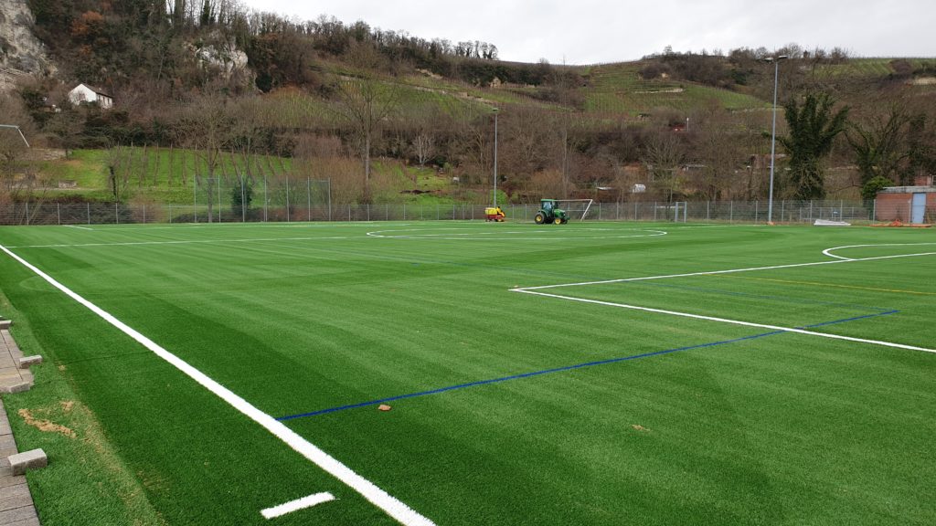 Der Kunstrasen nimmt allmählich Formen an. Der „Rasen“ liegt und auch die Linien sind schon gezogen. Jetzt wird der Belag noch vollendet und am Rand müssen auch noch einige Arbeiten erledigt werden. Die Aktiven sind momentan daran den seitlichen Weg mit Steinen zu pflastern. Hier möchten wir ein Dankeschön an Fabian Brändlin aussprechen, da er uns diese Steine zur Verfügung gestellt hat. Natürlich auch ein Dankeschön den ganzen fleißigen Helfern.