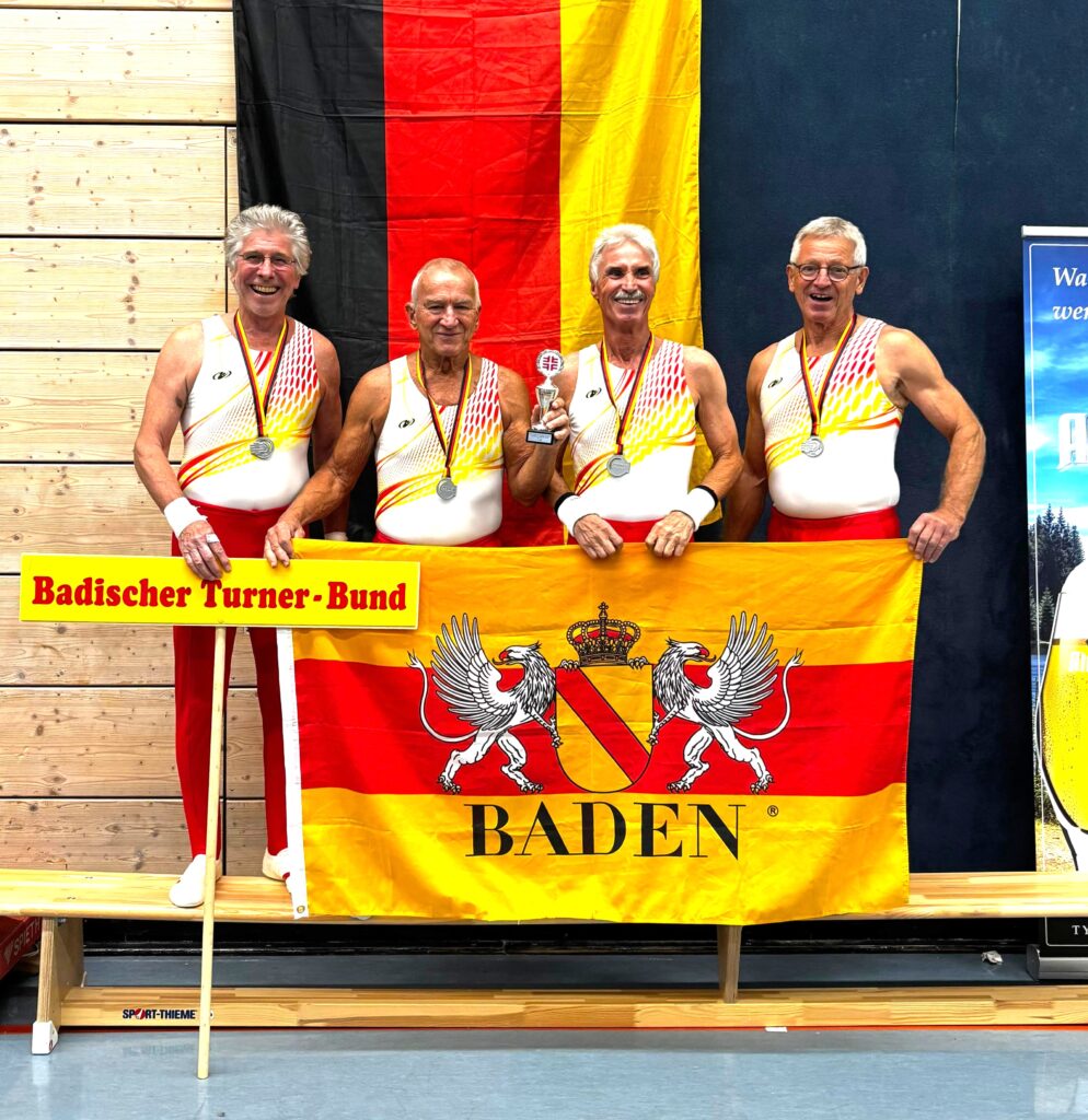 An diesem großartigen Erfolg hatten auch 3 Turner und 1 Turnerin aus dem Markgräflerland einen wesentlichen Anteil. In der Mannschaft der Turner M70+ erkämpften sich Jürgen Fischer (TV Britzingen/SV Istein), Klaus Geiger (SV Istein) und Hermann Strittmatter (TV Bad Säckingen/SV Istein) hinter der hoch favorisierten Mannschaft aus Sachsen den 2. Platz. Das Team wurde durch den Nordbadener Guntram Härdle (TV Helmsheim) vervollständigt.