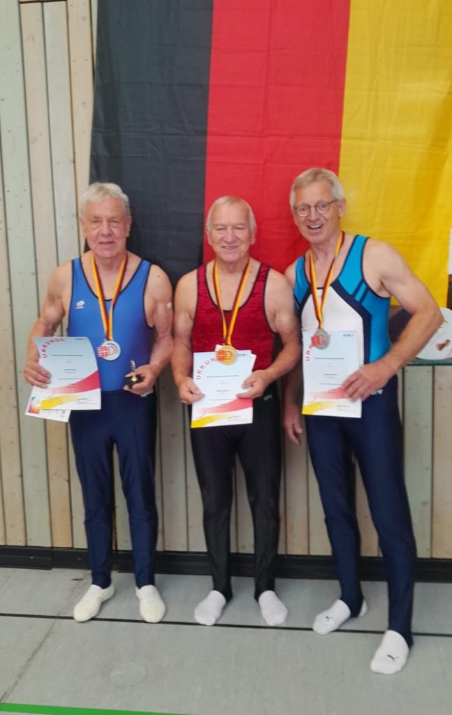 Bei den Deutschen Seniorenmeisterschaften im Gerätturnen am vergangenen Wochenende in Pirna turnte Klaus Geiger (SV Istein) in der Altersklasse M75 einen sehr guten Wettkampf und wurde mit deutlichem Vorsprung Deutscher Meister. Er verteidigte damit erfolgreich den im Vorjahr errungenen DM-Titel.
